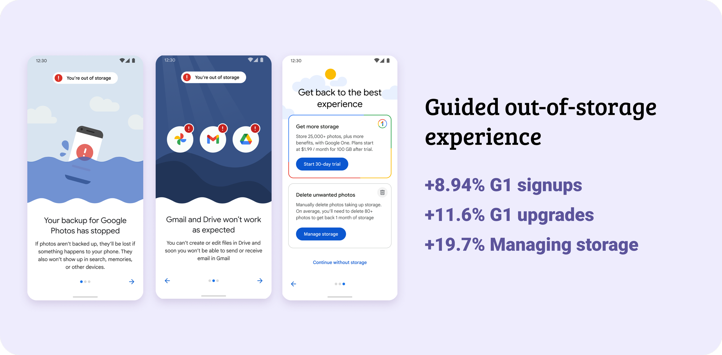 I worked with UXR to create user studies to understand more about users that were out of storage and the pain points that they were having.